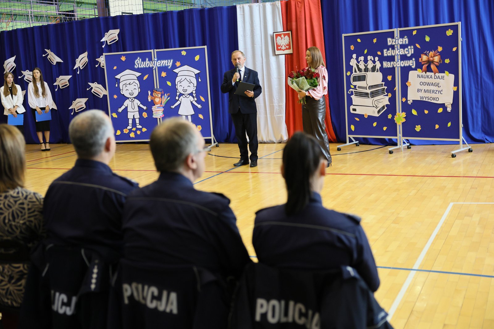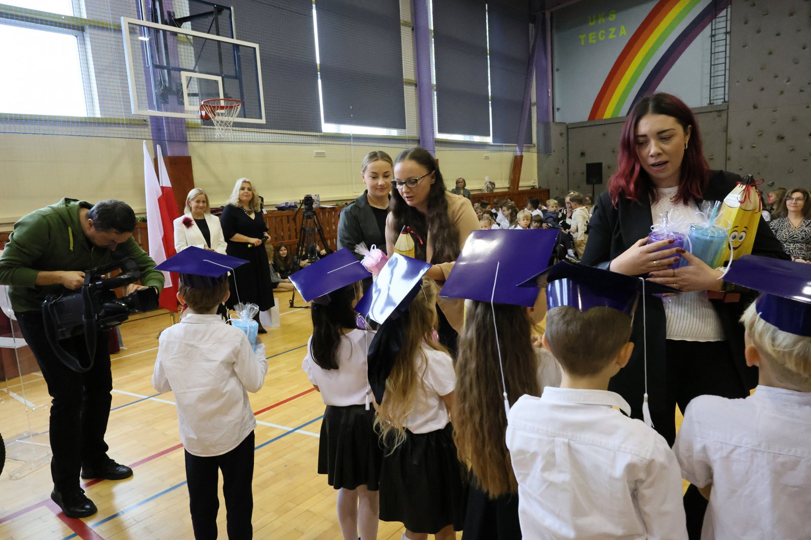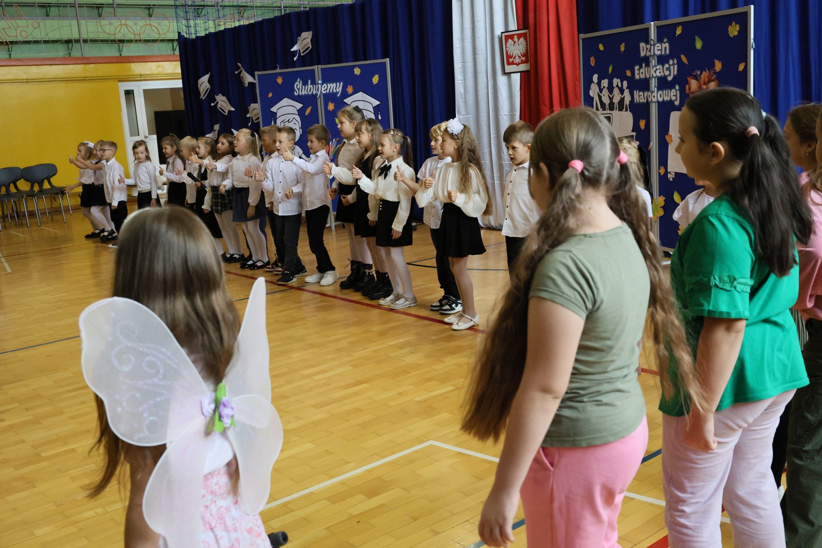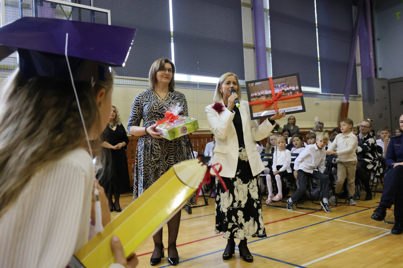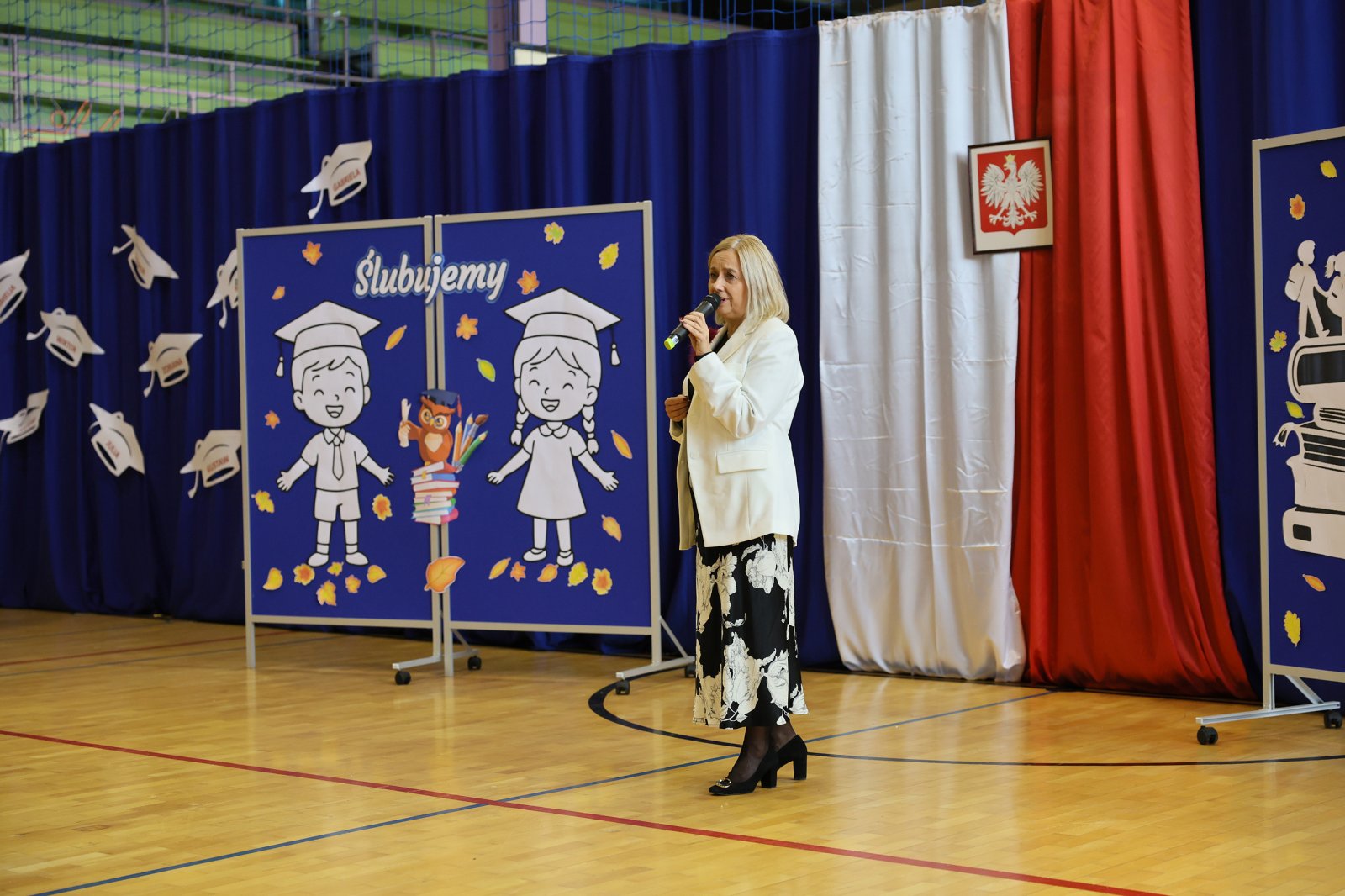 Dyrektor Dorota Kittler z radością obserwuje uczniów. – Są w naszej szkole dopiero od miesiąca, a już potrafią występować przed publicznością z taką swobodą, radością i energią – mówi. – To ślubowanie ma dla nas ogromne znaczenie, bo od dziś uczniowie klasy pierwszej stają się pełnoprawnymi członkami naszej szkolnej społeczności - podkreśla.
