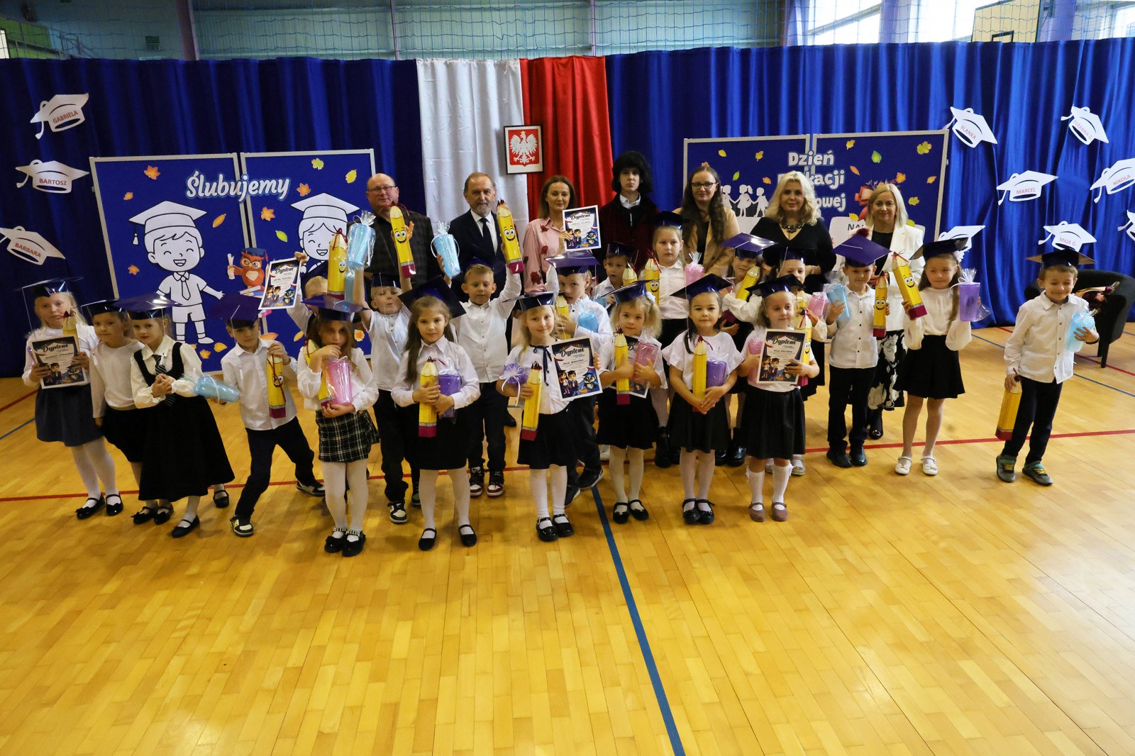 Pierwszoklasiści uroczyście ślubowali, że będą dobrymi uczniami i kolegami, a swoją nauką i zachowaniem będą sprawiać radość rodzicom i nauczycielom. Obiecali godnie reprezentować swoją klasę i szkołę oraz dbać o honor ojczyzny.